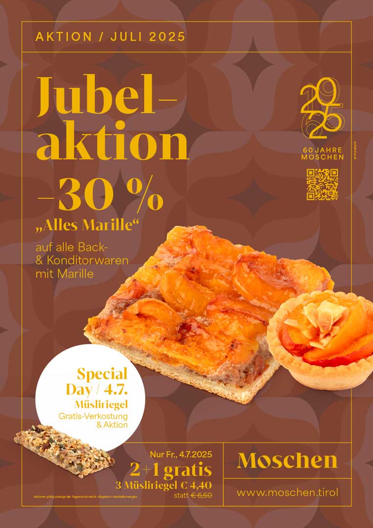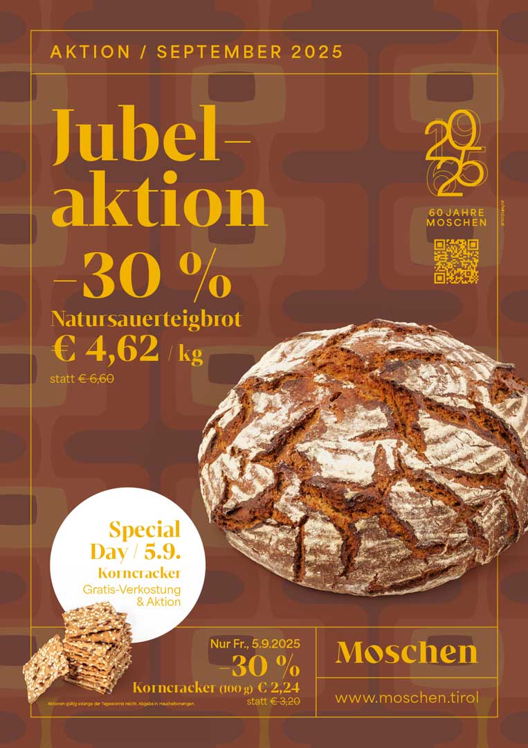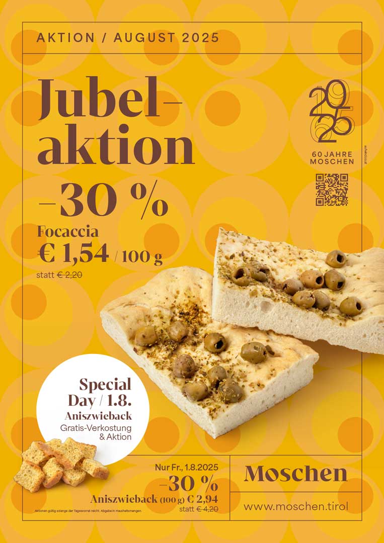 Ein Jahr voller Highlights, besonderer Momente und großartiger Aktionen neigt sich dem Ende zu. Unter dem Motto „Vom Mut zur Beständigkeit“ feierte die Bäckerei Moschen heuer ihr 60-jähriges Bestehen – und die Resonanz war überwältigend. Die monatlichen Jubiläumsaktionen, Verkostungen und Spezialtage kamen bei unseren Kund:innen so gut an, dass in der Backstube Hochbetrieb herrschte.